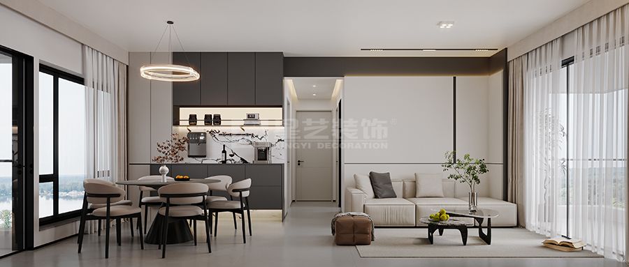 佳境康城臻熹园 98㎡现代黑白风设计,以 “黑白共生,简而不凡” 为理念,适配刚需户型的实用与美学需求。